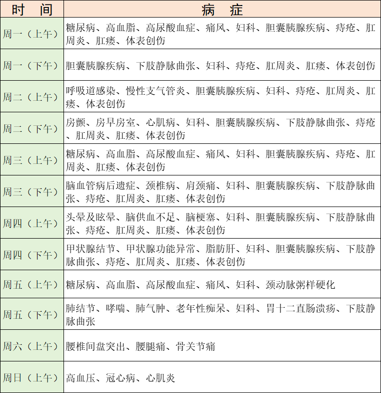 以上为专家门诊排班表,专家出诊时间如有变动,以当天医院门诊大厅出诊信息为准。
