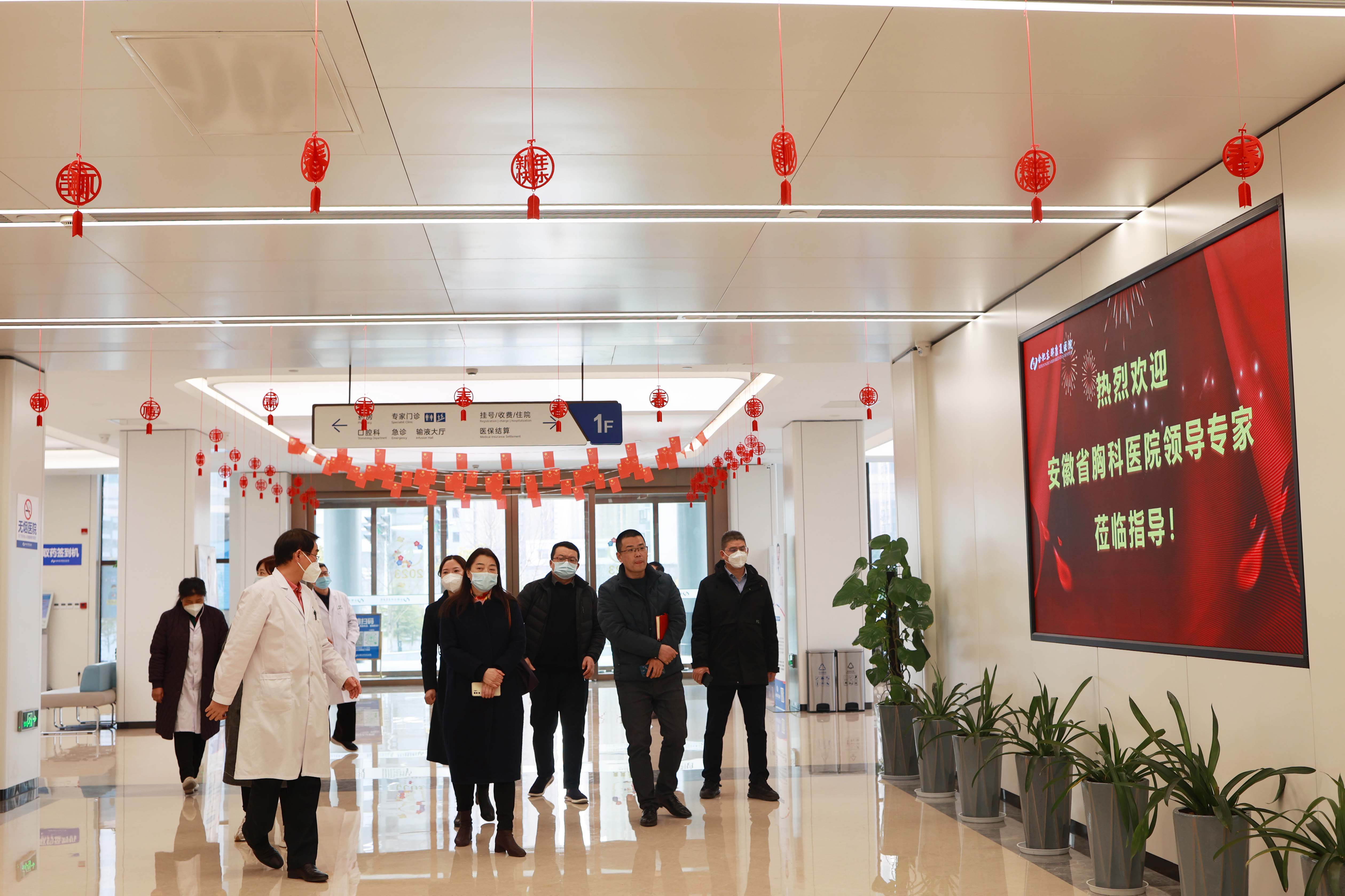 2023年2月1日安徽省胸科医院党委委员闵旭红及专家团队莅临指导一行莅临我院参观,我院王卫东院长等人陪同参观并座谈。 在医院领导及相关工作人员的陪同下,闵主任一行先后参观了我院门诊、医学